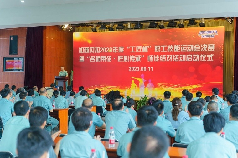 崗位先鋒群英集結(jié),技能尖兵亮劍爭(zhēng)鋒。6月11日,加西貝拉2023年度“工匠杯”職工技能運(yùn)動(dòng)會(huì)決賽暨“名師帶徒?匠心傳承”師徒結(jié)對(duì)活動(dòng)啟動(dòng)儀式在公司二廠隆重舉行,為員工發(fā)展鋪就“星光大道”,400多名員工參加,把加西貝拉“工匠月”系列活動(dòng)推向高潮。