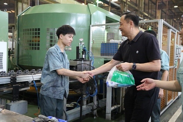 市產(chǎn)業(yè)集團董事長周大勇高溫慰問 2023-08-24 11:32:29 加西貝拉壓縮機有限公司 瀏覽次數(shù) 5511 市產(chǎn)業(yè)集團董事長周大勇高溫慰問 8月16日,市產(chǎn)業(yè)集團黨委書記、董事長周大勇帶隊來到公司,聽取企業(yè)關(guān)于夏季安全生產(chǎn)和防暑降溫措施的匯報,深入生產(chǎn)車間,親切慰問堅守在高溫崗位的一線員工,向大家表示感謝、致以敬意,并送上防暑降溫慰問品。他再三叮囑大家,要做好高溫下的自我保護,以健康的身體和飽滿的熱情投入到工作中。 上一條市委常委、組織部部長顏海榮來公司調(diào)研 下一條公司傳達學(xué)習(xí)貫徹長虹控股集團干部大會精神
