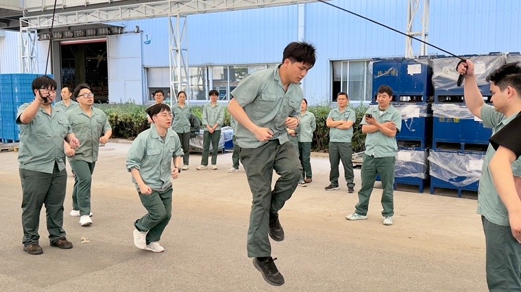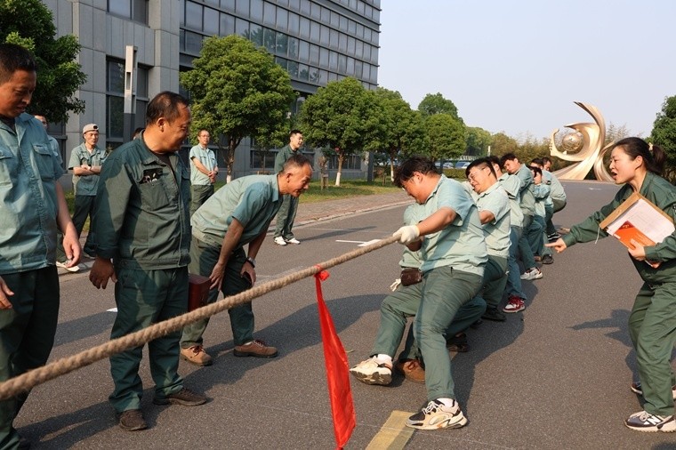 本次運動會的主題是“紅色五月 繩彩飛揚 力拔山河”,以分工會為單位組隊參賽,有18支隊伍參加拔河比賽,有16支隊伍參加跳繩比賽,“五一”前夕,小組賽分別在公司嘉興一廠、二廠和三廠舉行?;顒蝇F(xiàn)場,拔河參賽隊員緊握繩索,眼神堅定,齊聲吶喊發(fā)力,比賽過程高潮迭起,現(xiàn)場觀眾的加油助威聲震耳欲聾。跳長繩選手們有序穿梭在長繩構(gòu)筑的優(yōu)美弧線中,輕盈的腳步,躍動的身體,流暢的配合,博得了觀眾的陣陣掌聲。